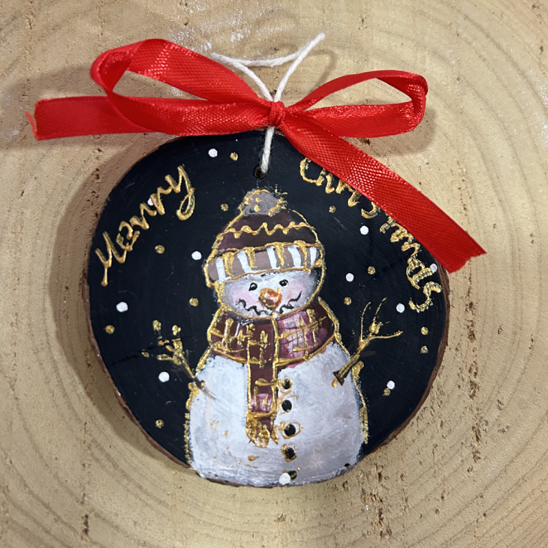 Το στολίδι είναι από φυσικό κορμό δέντρου και είναι ζωγραφισμένο στο χέρι με ακρυλικά χρώματα και διακοσμημένο με κορδόνι και κορδελάκια υψηλής ποιότητας.