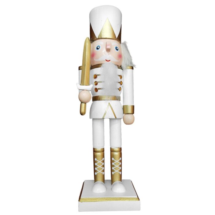 Στρατιώτης Ξύλινος Καρυοθραύστης Χριστουγέννων Λευκός-Χρυσός