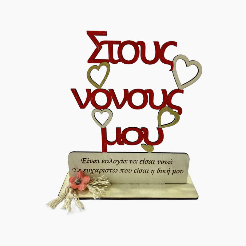 Ξύλινο χειροποίητο επιτραπέζιο διακοσμητικό με χάραξη Στους νουνούς μου σε φυσικό ξύλο!