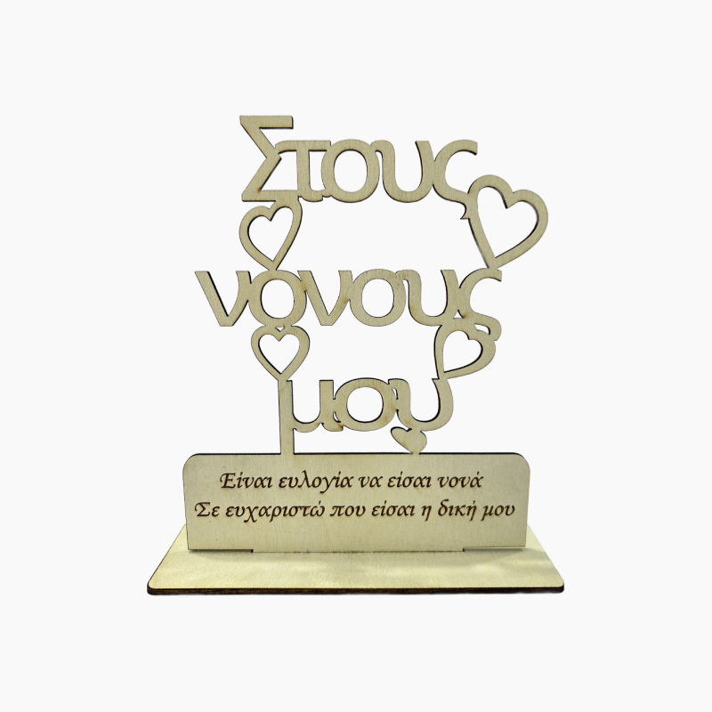 Ξύλινο χειροποίητο επιτραπέζιο διακοσμητικό με χάραξη Στους νουνούς μου σε φυσικό ξύλο!